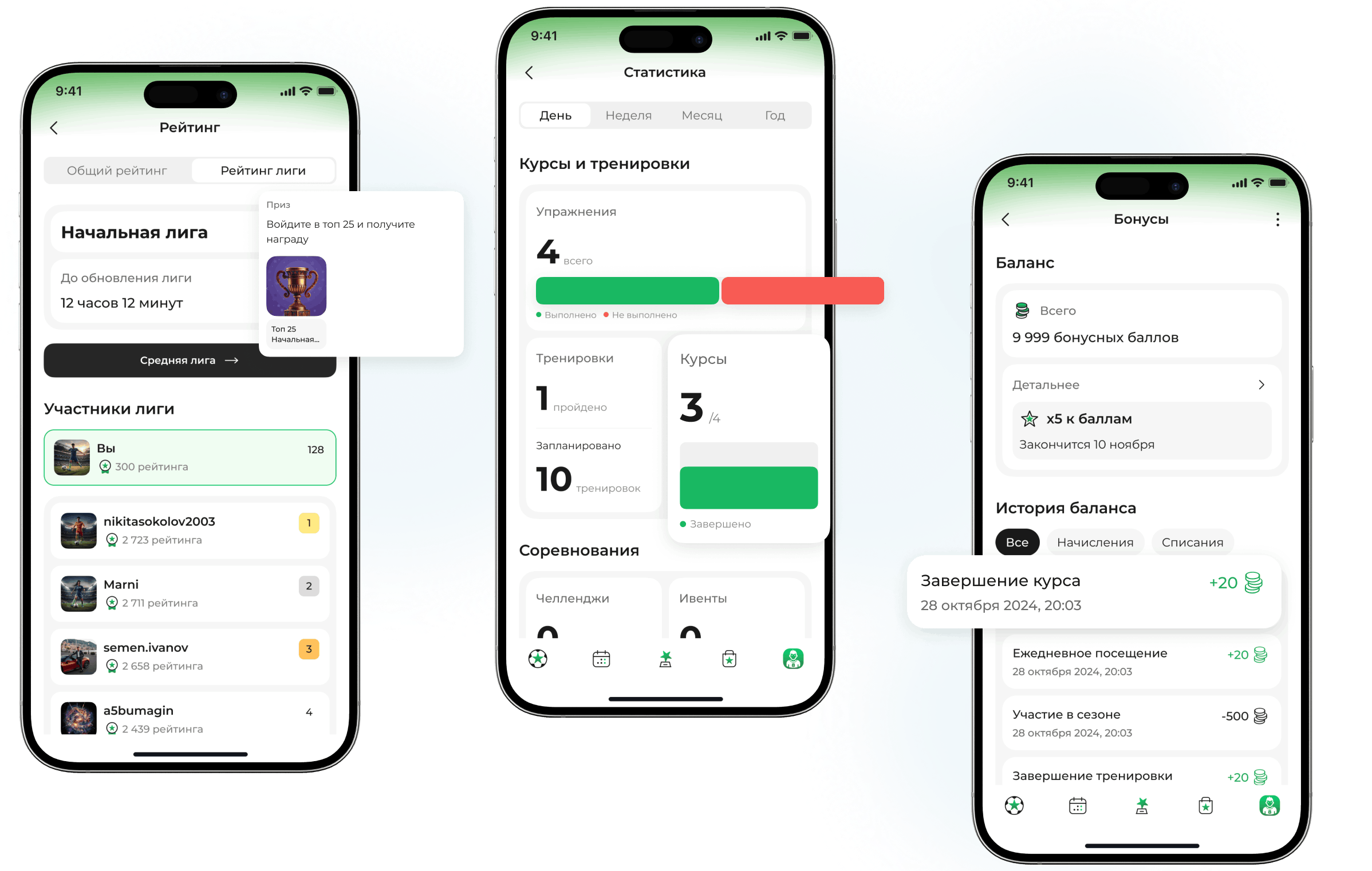 Игроки зарабатывают бонусы после прохождения тренировки, курса и челленджа. Бонусы можно использовать для покупки спортивного инвентаря в магазине