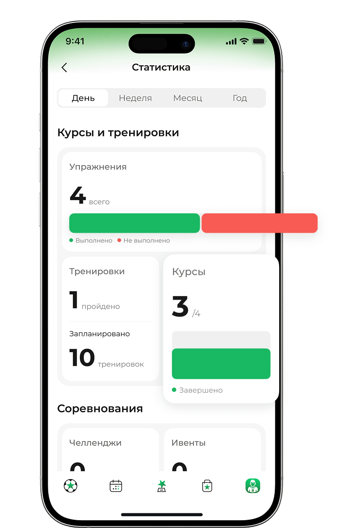Каждая тренировка, курс, ивент и челлендж рассчитаны под один из трёх уровней — начальный, средний или продвинутый.