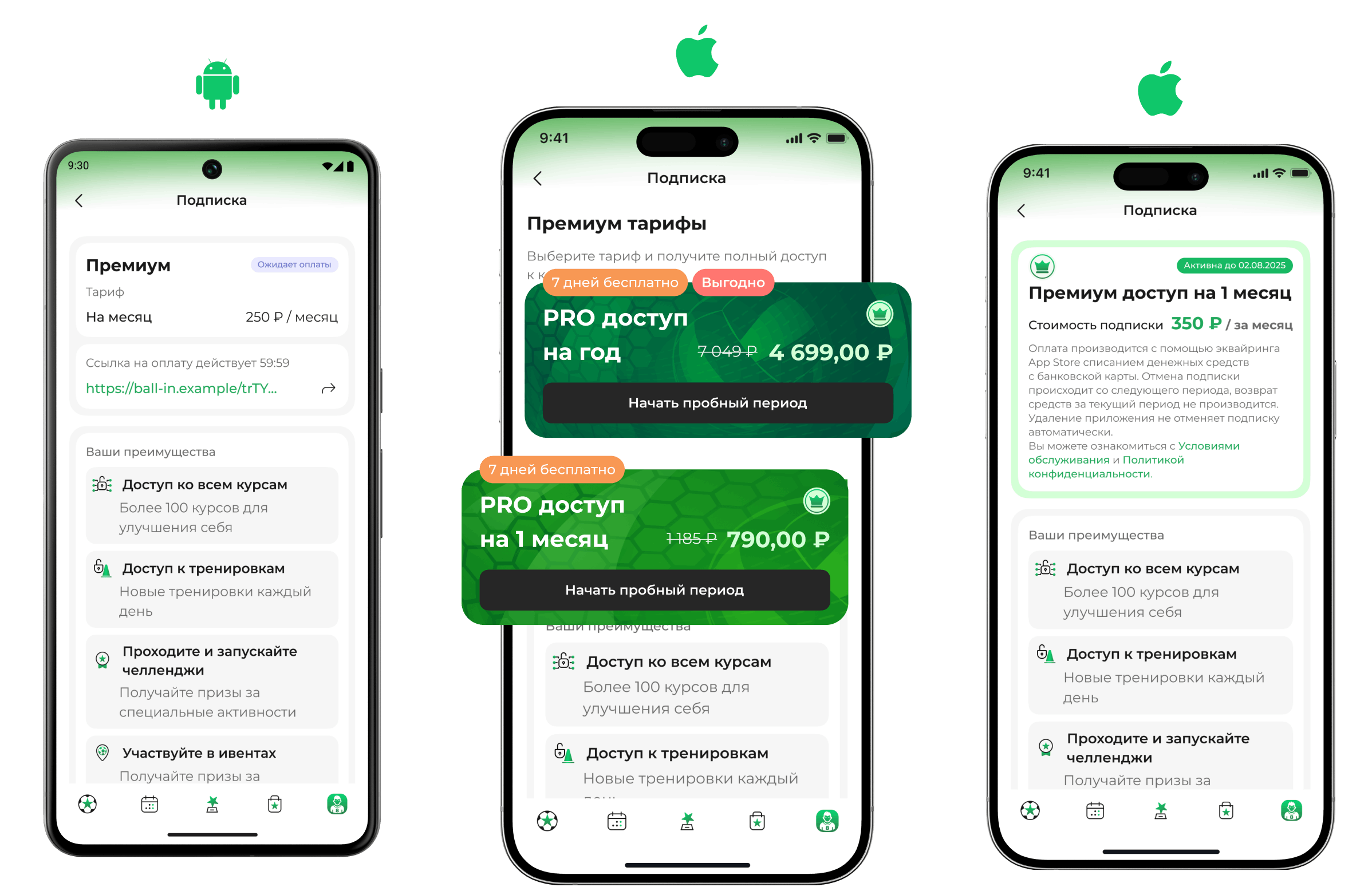 Пользователь может приобрести подписку на месяц или год. После покупки он получает триал-период: 7 или 14 дней бесплатно. Стоимость зависит от страны и налога Apple Store и Google Play