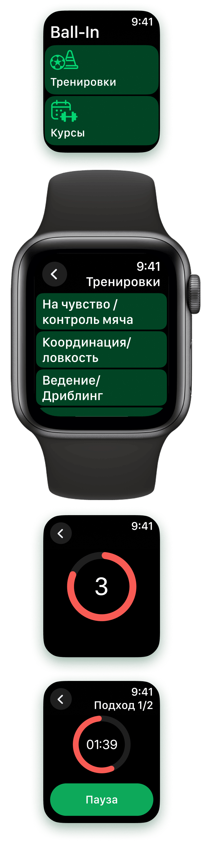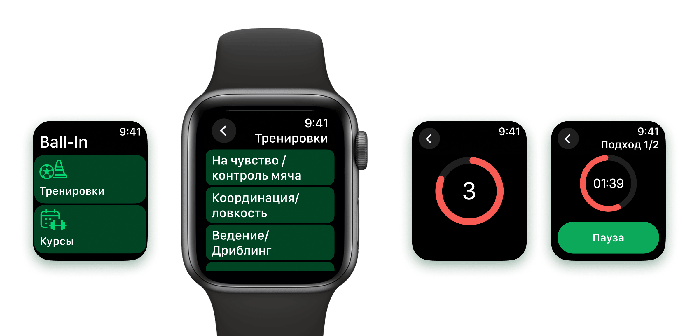 Часы синхронизируются с мобильным приложением на смартфоне: можно включить тренировку на iPhone и продолжить её на Apple Watch. Особенно удобно для тех, кто занимается на футбольном поле