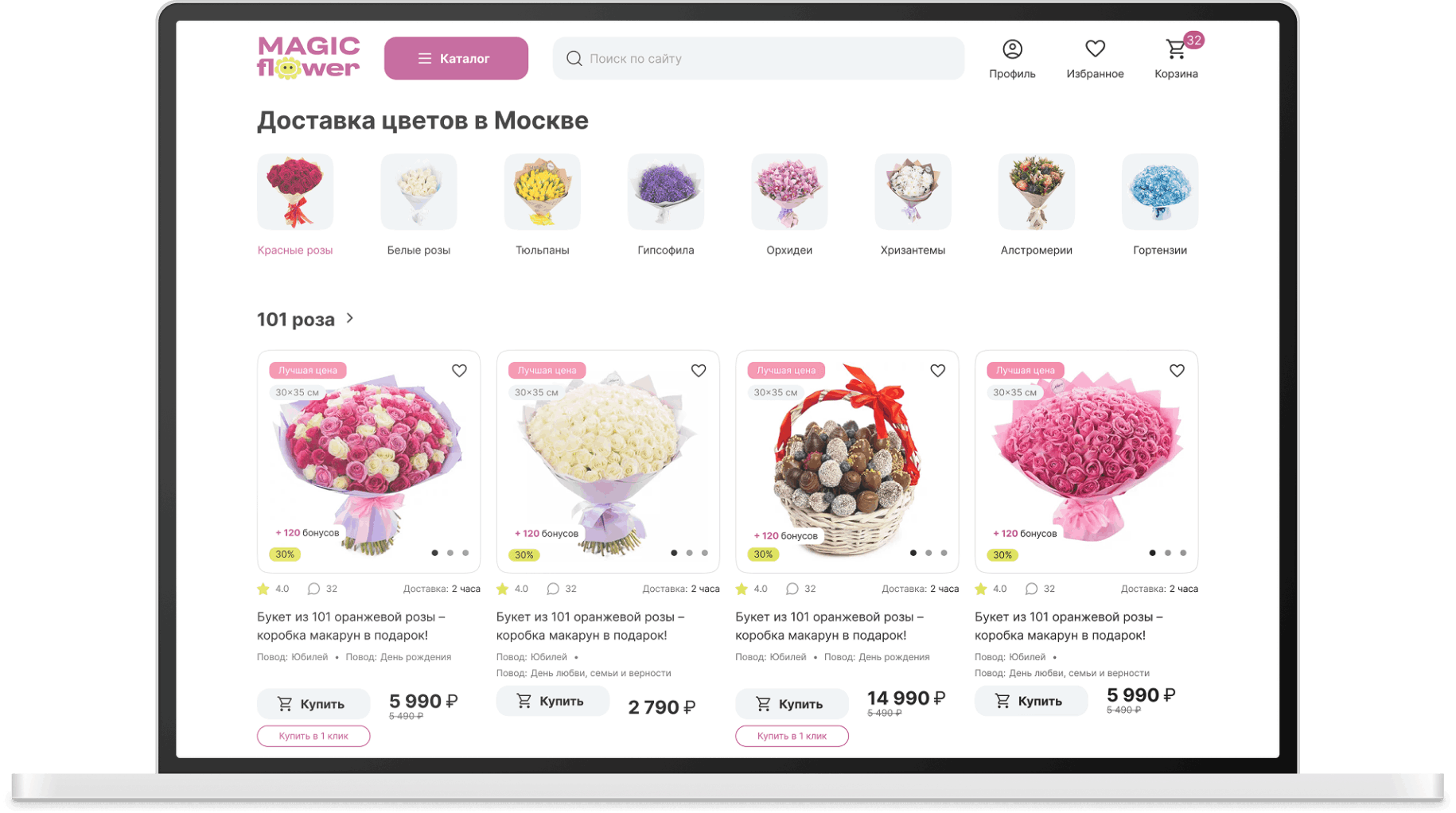 Magic Flower — интернет-магазин по доставке цветов, работающий в Москве и Санкт-Петербурге.