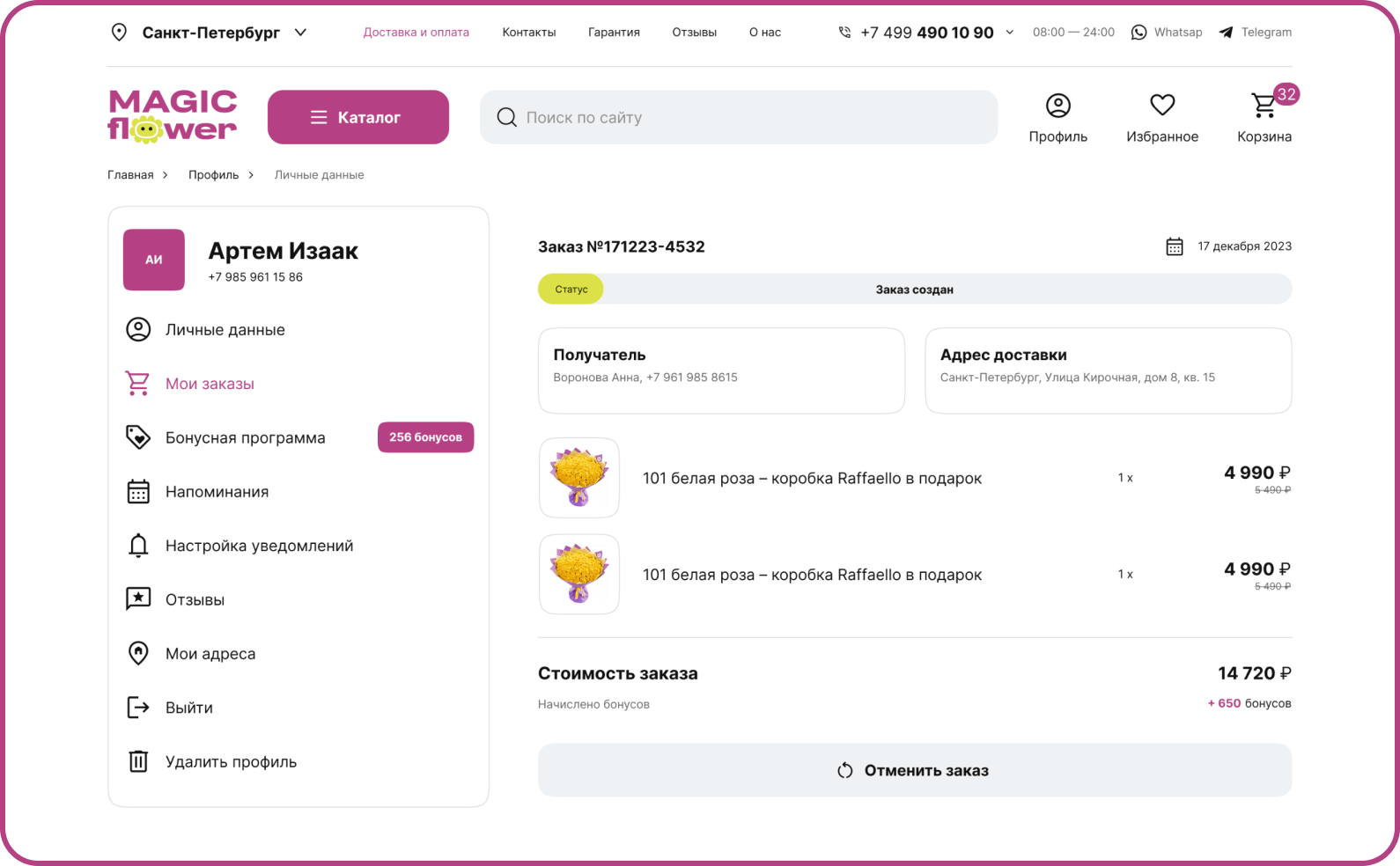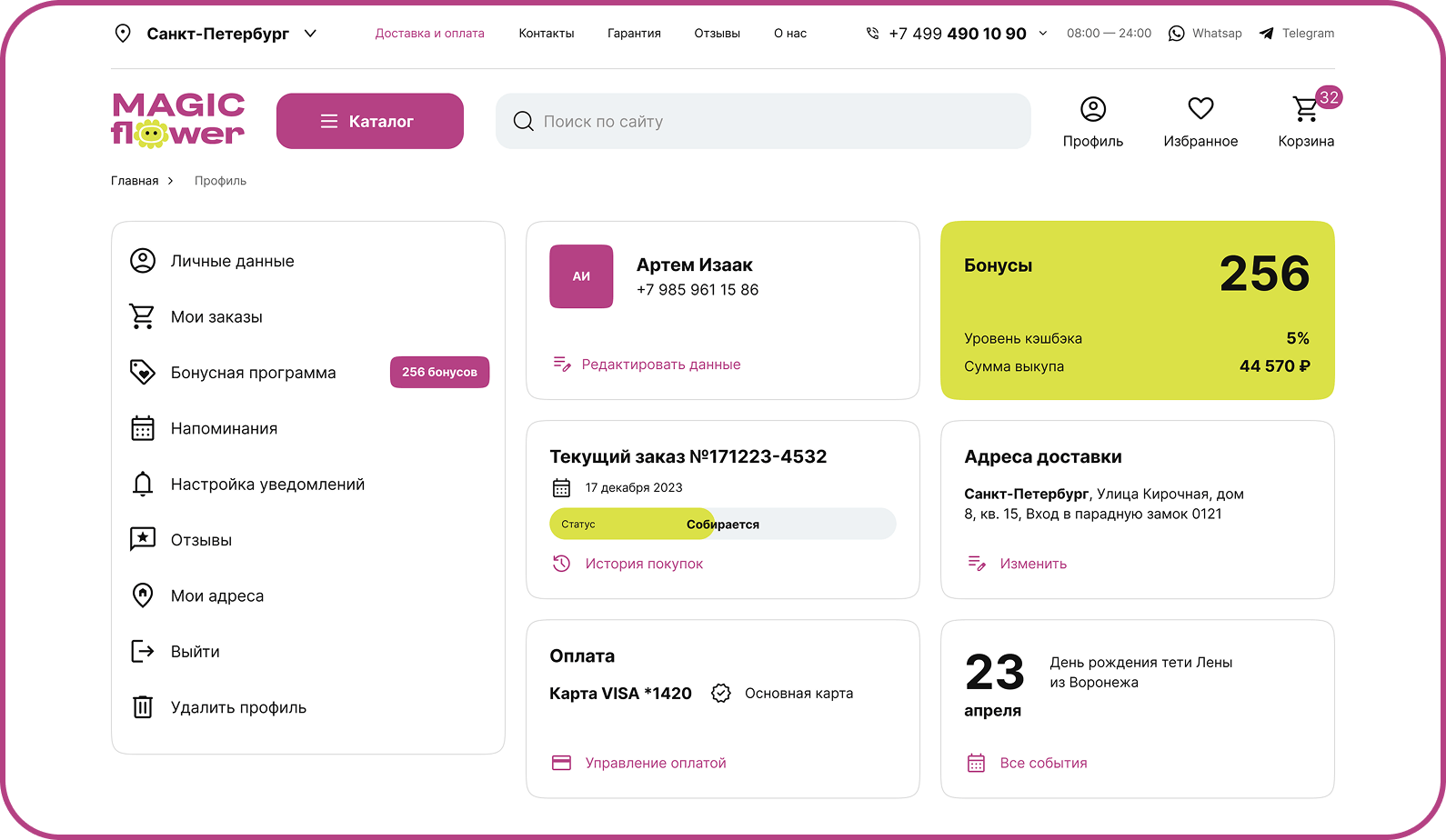 Ранее Magic Flower обращались к нам за техническим сопровождением сайта и разработкой мобильного приложения, а в этот раз пришли с новыми задачами — доработкой и полным сопровождением сайта.